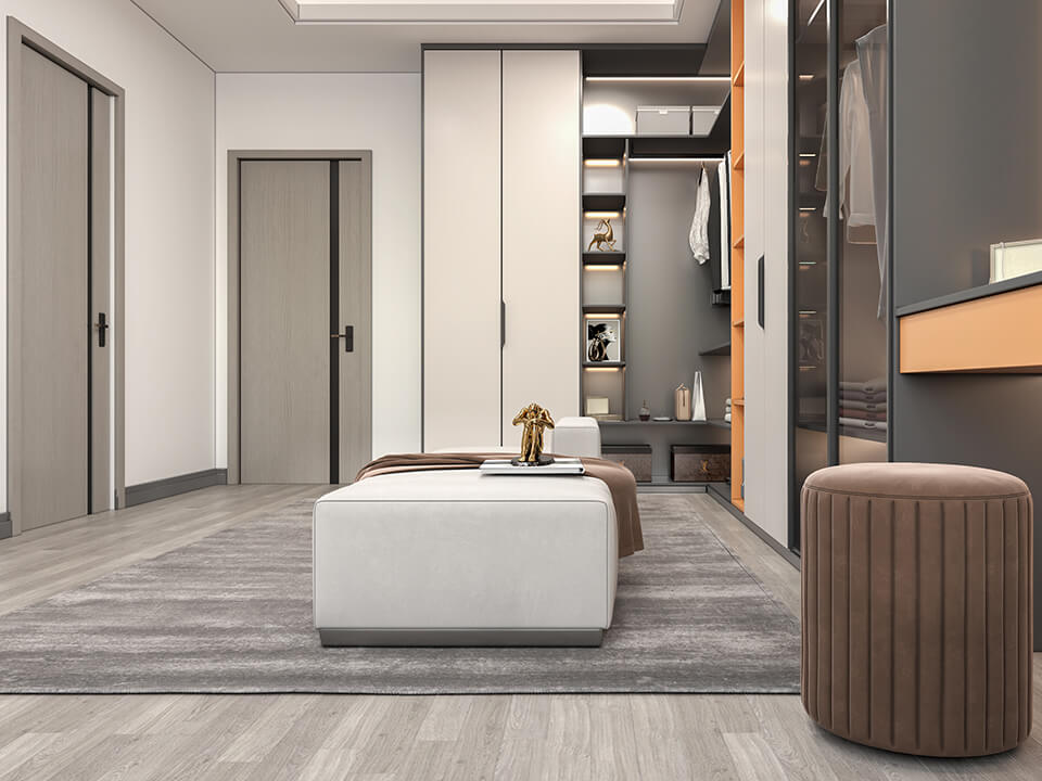 Pocket doors: Pocket doors are similar to sliding doors in that they slide along a track, but they disappear into a recess in the wall when open, freeing up floor space. They are ideal for small rooms or spaces where swing space is limited.