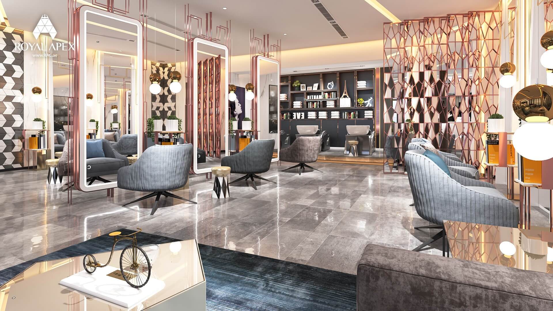 Enter a world of pampering and style with our "Chic Salon Retreat." This 3D rendering features a salon room adorned with multiple chairs and tables. The inviting atmosphere and modern decor create an ambiance of comfort and elegance. With attention to detail and Royal Apex's commitment to quality, we ensure a seamless salon experience for both clients and professionals. Discover more images of this captivating project in the complete gallery and envision a salon that surpasses expectations.