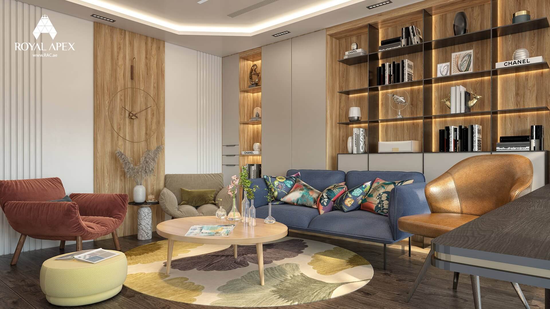 Immerse yourself in our captivating interior design portfolio that showcases our unrivaled creativity in transforming spaces. From elegant circular lounge retreats to modern office rooms and luxurious living rooms, our portfolio exemplifies our ability to create personalized and enchanting environments. Discover the harmonious fusion of functionality, aesthetics, and attention to detail in every project. Explore the complete gallery to be inspired by our innovative designs, meticulous craftsmanship, and impeccable taste. With Royal Apex's expertise in interior design, we turn ordinary spaces into extraordinary expressions of style and comfort. Let our portfolio ignite your imagination and unlock the potential of your own space.